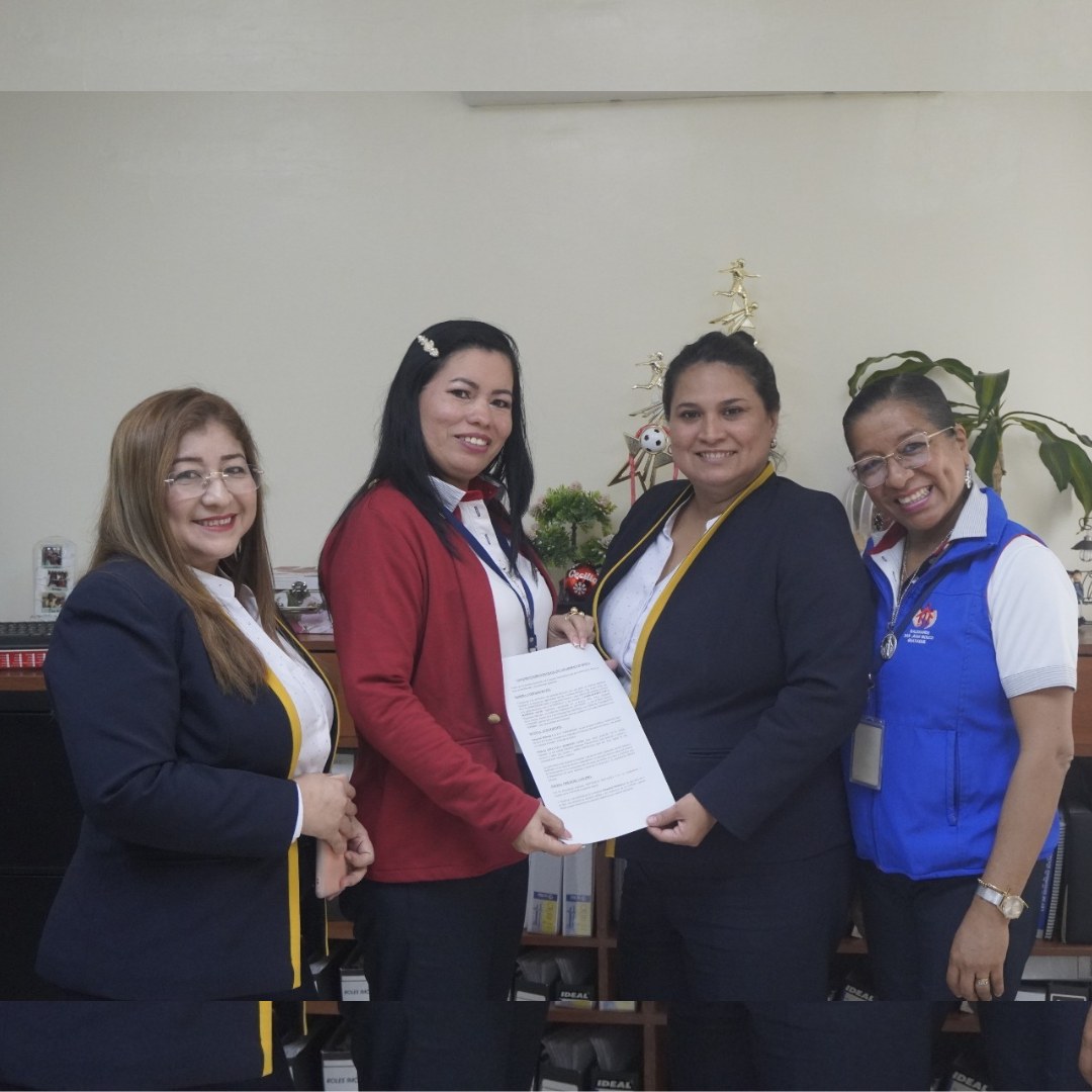 El acto de firma del convenio fue encabezado por la rectora, Lcda. María Eugenia Carpio, quien resalta la integración del conocimiento académico con la experiencia práctica. Esta alianza no solo permite a nuestros estudiantes aplicar sus conocimientos en un entorno real, sino que también les brinda experiencia laboral que será crucial para su futuro profesional.