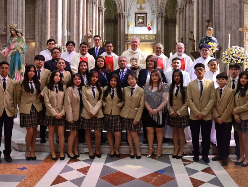 El viernes 30 de enero de 2026, la comunidad educativa de la Unidad Educativa Fiscomisional Salesiana Don Bosco vivió una jornada profundamente significativa al conmemorar sus 130 años de vida institucional. La celebración inició con la Eucaristía presidida por el P. Marcelo Farfán, SDB, inspector de los Salesianos en el Ecuador, en la Basílica del Voto Nacional, un escenario emblemático que acogió a autoridades, estudiantes de tercero de Bachillerato, colaboradores salesianos, padres de familia, exalumnos y representantes de obras hermanas.
