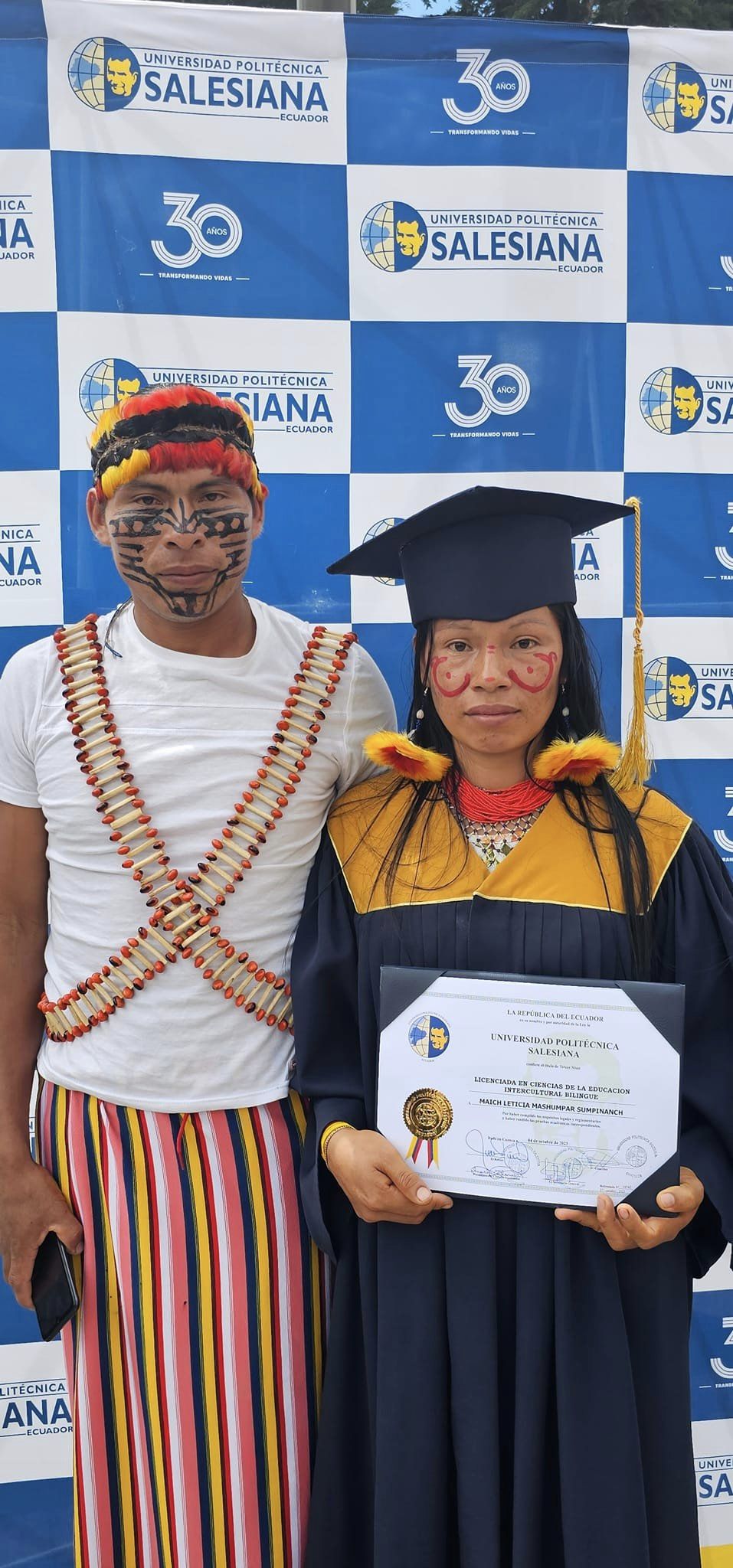 Un total de 12 estudiantes Achuar se graduaron ayer de Licenciados/as de la Carrera de Educación Intercultural Bilingüe. Ellos son la 5ta promoción de profesionales del Centro de Apoyo de la Universidad Politécnica Salesiana (UPS) que funciona en la Comunidad de Wasakentsa.