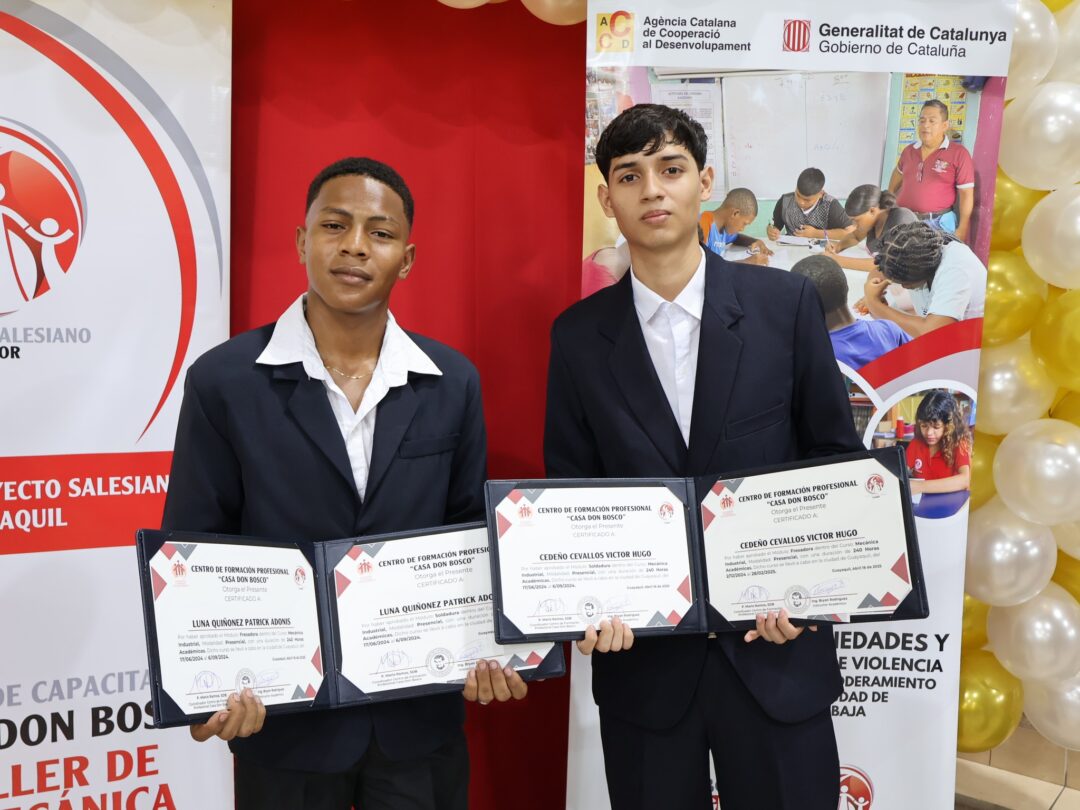 La implementación de este programa ha sido posible gracias al apoyo y la valiosa colaboración de la Agencia Catalana de Cooperación al Desarrollo – Generalitat de Cataluña, que ha trabajado de la mano con la Fundación en su misión de ofrecer oportunidades reales de desarrollo a adolescentes y jóvenes en situación de vulnerabilidad y exclusión. «Este es un paso importante no solo para nuestros estudiantes, sino para toda la comunidad. La educación técnica transforma vidas, y estamos orgullosos de seguir generando espacios donde los jóvenes puedan construir un futuro con esperanza y dignidad», expresó el P. Mario Ramos, SDB director de la FPSG.