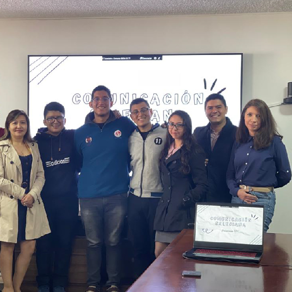 Esta mañana, los tres jóvenes prenovicios (centro de la foto) concluyeron su proceso formativo en el ámbito de la comunicación. Ellos socializaron los aprendizajes adquiridos durante varios meses, así como los productos comunicacionales que elaboraron sobre las etapas formativas de los salesianos y que tienen como finalidad despertar el interés vocacional de otros jóvenes.