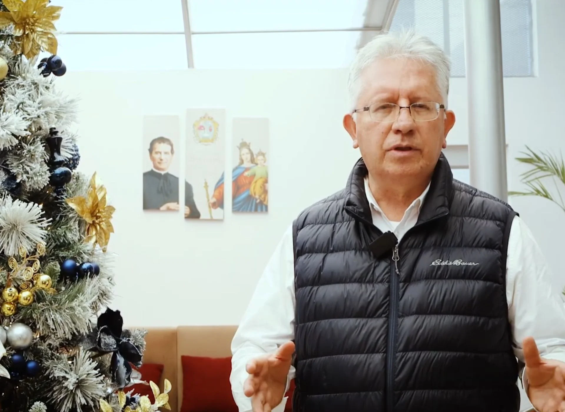 En la víspera de la celebración de la Navidad, el P. Marcelo Farfán, inspector, comparte su mensaje de buenos deseos dirigidos a todos quienes son parte de las comunidades, de las obras y de los distintos grupos de la Familia Salesiana del Ecuador. A través del siguiente video, el padre Inspector hace un llamado a renovar el sueño de Dios para la humanidad y asumir un compromiso permanente con la paz, la justica y a favor de la vida, especialmente la de los jóvenes.