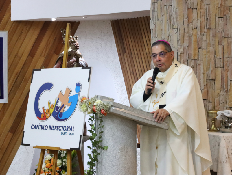 Una visita especial recibió el Capítulo Inspectorial en la jornada previa a su finalización. Mons. Alfredo Espinoza, Arzobispo de Quito y Primado del Ecuador, compartió un saludo a la Asamblea Capitular donde los motivó a que no dejen de ser esa Inspectoría que abre caminos, que asume desafíos teniendo siempre el espíritu de Cristo en el corazón.